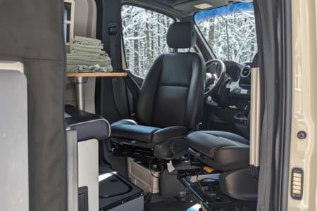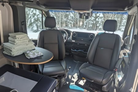 This luxury cruiser is packed with top end components and comes with 200 watts of solar power so shore power is not required. Although, you can still plug into shore power for a more luxurious experience. Travel off-grid, navigate dirt roads, and still have your own toilet, indoor hot shower, full kitchen, and comfortable queen-size bed. Plenty of storage for camping gear and long-term life on the road. Hide away tables, USB charging, and cell booster for connectivity/remote work. With a 360 degree camera system, navigation, swivel seats, power sliding main door, and Active Driver Assist, this van is a dream to drive. Hit the road with everything you need to go wherever you want. This van is perfect for your ultimate road trip.