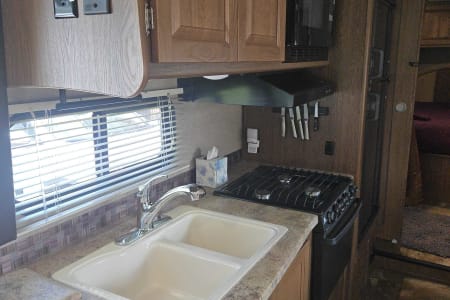 Along with being fully stocked for your journey, your campsite will be ready to enjoy as well. Included is camp chairs for 7, yard games, area mat, outdoor TV and outdoor kitchen.