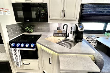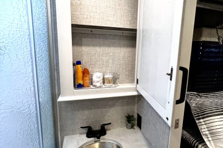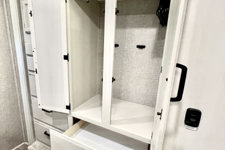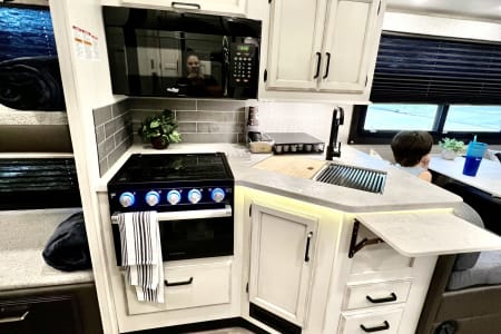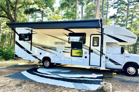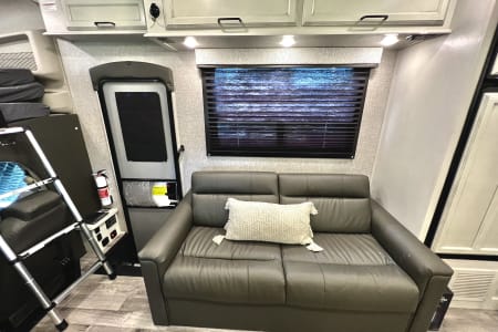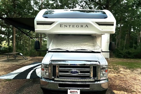 "Big Bessie" is a new 2023Entegra 31F fully loaded class C. She has everything you need to make your RV vacation experience easy, fun, and relaxing. She comes with E-Z Drive system that will make your drive smoother on rough roads. And the set up is super easy with the auto-leveling system. We have made the water connection setup easier by adding 90degree elbows, so no kinked hoses! We have added quick connects to the water lines to make setting up a breeze. Our ultimate goal is to help you set up quick and easy, so you can go on & enjoy your adventures with your family & friends. She also has a backup camera and sideview cameras that will improve road visibility and driving safety. Safety is our goal, so we have also included a PowerWatchdog, a Smart Surge Protector. It has working smoke detector, carbon monoxide detector, and a fire extinguisher. You can also enjoy watching the game or movie outside around the campfire with the outdoor tv. Comes with a large power awning with LED lights. Big Bessie has a single slide out that creates a large open feeling space, it has a spacious loft with a weight capacity of 750 pounds, perfect for a kid's hangout spot. She comes with a smart TV in the inside which swivels out for movie night with the family. She has 2 AC units so you will always feel cool. Big Bessie can sleep 10. You have the spacious bunk over the cab, the queen size bed, bunkbeds, dinette and sofa both fold out to a full size beds and are super comfortable. We have also added memory foam mattress toppers to the queen size bed, bunkbeds, and the rest of the sleeping areas, for more comfort. She is fully equipped with 2 way refrigerator, convection microwave, 3 burner cooktop with an oven, has a double sink with extra counter space for prepping. It has a large spacious pantry and lots of cabinets and drawers for storage. She has a spacious radius shower and the master bedroom comes with plenty of wardrove space & additional storage under the queen size bed.