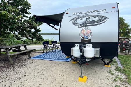 "Miss Blue" has room for the "Hoomans" and "Fur Babies". You will be able to enjoy your bug free hideaway vacation in an air-conditioned fully accommodated RV. She comes loaded with a queen size memory foam mattress, a dinette/bed (for the pups or little ones) fridge & freezer, gas stove, and full-size bathroom. All you need to bring is the grub and your pillows. All towels, bedding, cookware, utensils, toaster, waffle iron, and coffee maker are already on board. Enjoy the outdoors with our chairs, ground mat, and powered awning. If you plan to BooneDock or Dry Camp rest a sure she is now equipped with 2 marine batteries and 2 LP tanks to enable longer stays disconnected from the grid (note a generator would still be required to operate the AC). Let us take the worry out of your stay by delivering "Miss Blue" where we will set her up, make her steady, and turn on the AC. When you're finished, we'll pack her back up and return her for her next adventure.
