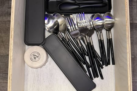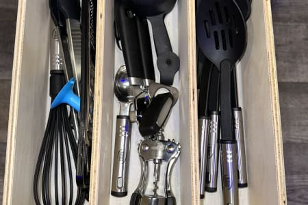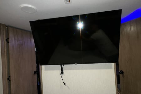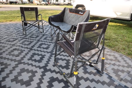 But wait, there's more! Wolfy has a range of amenities to make your trip a breeze. You'll find everything you need, including dining plates, bowls, silverware, pots and pans, a kitchen tool set, a toaster, a coffee maker, four cozy camping seats, toilet paper, and even 2 TV with all the necessary campground connections.