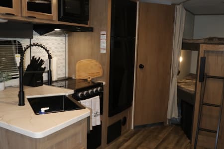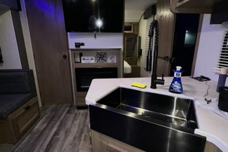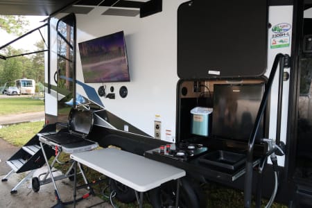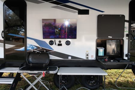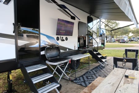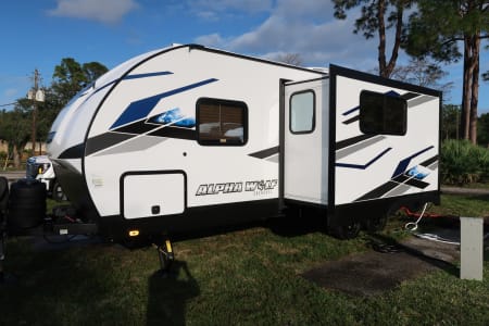 Hey there! Let me introduce you to Wolfy, a Luxurious new RV trailer from 2024 that can comfortably accommodate 8 people. Get ready for your next adventure in this amazing, fully-equipped trailer. Wolfy provides a convenient electric 20’ awning that can be effortlessly operated with a button push. Plus, it's equipped with stabilizing jacks at all four points for added stability.