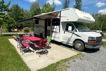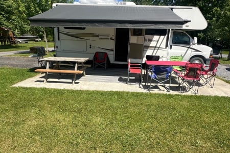 Grande salle de bain avec douche, A/C, génératrice, TV, tapis d’extérieur auvent électrique, BBQ au propane, table extérieure et quatres chaises pliantes!