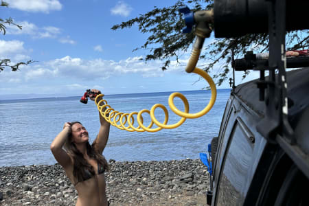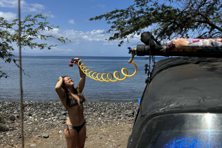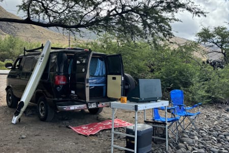 Your camper, includes at no additional charge all the necessities required for a truly unforgettable Maui vacation All of the interior electronics , such as lights , water pump, usb chargers, roof fans ,inverter are all powered by a battery bank for power storage you will never run out of energy.