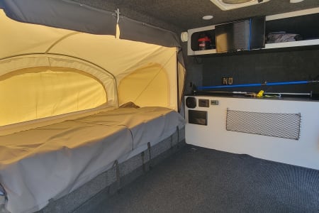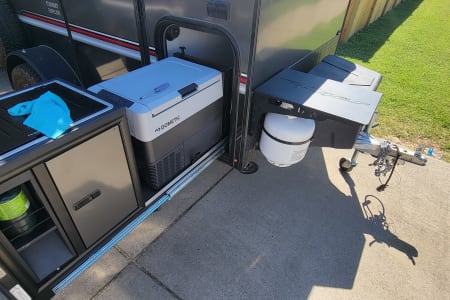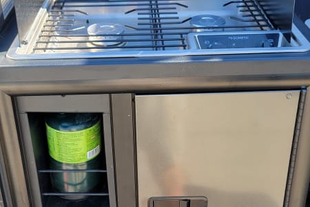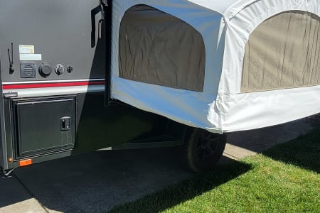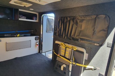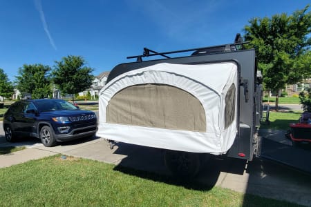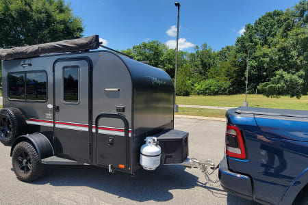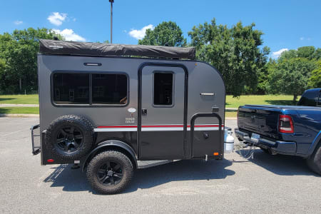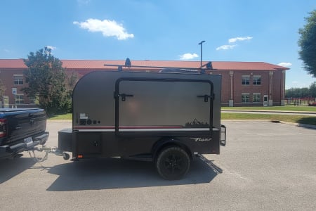 Load up your off-road toys in our overland Flyer Explore micro-lite toy hauler (Bikes, 2 Motor cycles, or 1 Quad). Once you have arrived at your destination, the rear ramp door will make loading and unloading super easy. A/C and Heat, TV, Blu-ray, stereo, overhead storage, the trailer provides a comfortable 48X80 tip-out bed and lots of space for sleeping 2 more people. Enjoy the kitchen slide out with 12V refrigerator and two burner stove, you can easily whip up meals and snacks in the great outdoors! Lots of power for long weekend with the large Lithium Battery. Dogs are welcome to share as well.