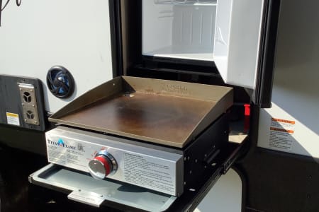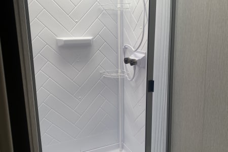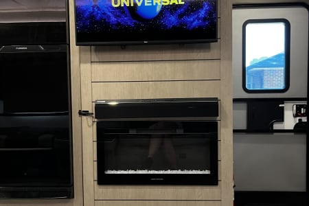 DELIVERY ONLY. This new 2024 Forest River Wildwood platinum RV sleeps 6-8 people comfortably making it ideal for larger families or groups. It has a custom king in the master with lots of storage and TV. Has a rear private bunkhouse with a set of double bunkbeds and storage underneath, a desk, and a private half bath. The full bath is located in the hall outside master bedroom and features a beautiful shower with skylight and adjustable water temperatures . The U-shaped dinette table lets down to a full size bed, and the jackknife couch pulls out into a bed. After arriving to a fully set up campsite, prepare your lunch indoors, or outside at the outdoor mini kitchen with a flat top griddle , grill, and fridge. Inside, you will have a full kitchen with all the luxuries you could ask for. It has an oven, cooktop, double sink, microwave, large fridge, and large hidden pantry. Kitchen is fully equipped for you and me with small appliances, utensils, lots of extras just to name a few. There is a built-in electric fireplace with FM stereo and Bluetooth sound bar under a flatscreen TV. Comes with canopy set up for your convenience and shade, outside camp mat and 5 camp chairs. We will deliver and set up your camper. All you have to do is show up. You will leave loving the spacious and comfortable quality of this camper…we hope to see you!
