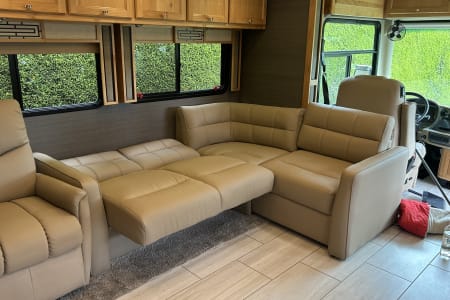This RV is fully loaded with all options. It has 4 slides and is huge inside. Diesel pusher. Very comfortable rear bed. 3 awesome recliners. Gets pretty good mileage. 4 slides make it very spacious inside.
