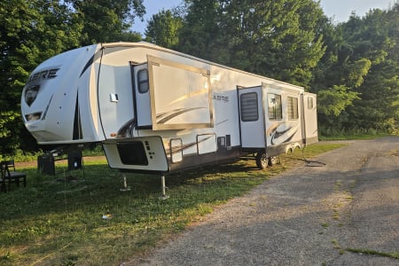 *** We do not allow towing of our fifth wheel. We will deliver and set up within 60miles of our location *** Camper requires 50amp for full function. Adapter available for 30amp site available upon request