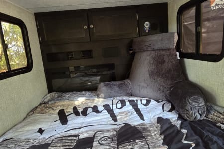 The Bushwhacker also includes convenient features like USB ports for charging devices. Outdoor Kitchen has Blackstone griddle,microwave,mini fridge,coffee maker and hot plate for quick meals, The 270-degree awning provides ample shade, making it ideal for relaxing outside. Led lighting outside and Rock lights makes this trailer the talk of the campsite. (check out the add ons for a complete screen room with floor and Panels to enclose the 270 awning to allow for more privacy and protection from the weather.Whether you’re heading to the trails, beach, or anywhere in between, this camper is your gateway to adventure. Book your journey today and experience the freedom of the open road!note: linens,towels and pillows are not provided, if you need we can add after booking
