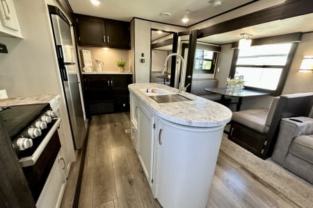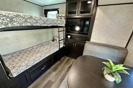 The 2021 Jayco Jayflight 33RBTS is an ideal travel trailer for families and groups seeking a comfortable camping experience. With its spacious triple slide-out design, this model offers plenty of room to relax and enjoy time together. The rear bunkhouse is perfect for kids or extra guests, while the well-equipped kitchen makes meal prep a breeze. Gather in the cozy living area, complete with a comfortable sofa and dinette. Enjoy the outdoors with the exterior kitchen and power awning for seamless entertaining. With a king bed in the master suite and durable construction, the Jayflight 33RBTS ensures a memorable getaway for everyone!