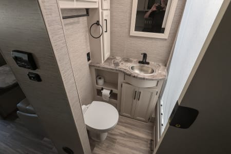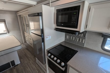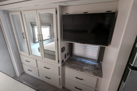 Big king size bed, overhead bed and the dinner folks into a bed. Brand New unit.