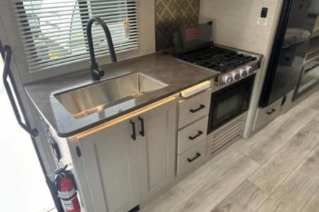 Inside, you’ll find a versatile King Murphy bed that easily transforms your living space by day and a cozy bedroom by night.