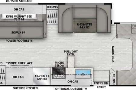 On-board generator with push button start, so no matter your campground amenities you will feel right at home.