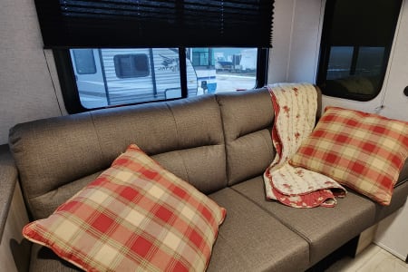 We love our new camper, you will too! There's plenty of space for everyone, the beds are comfy, extra tall ceiling, even my hubby (who's 6'4") can get around easily!