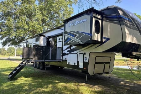 This brand new Fuzion Toy Hauler is built for comfort, fun, and functionality — featuring 2 party decks and tons of room to relax or entertain.