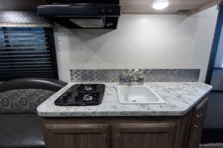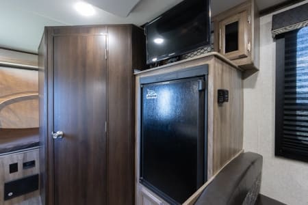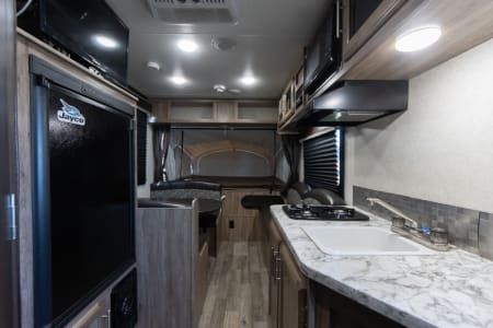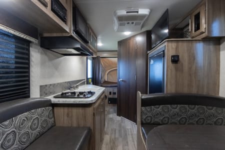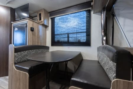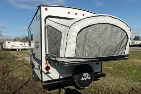 If you want to go on a road trip, great. This is a very lightweight camper. It is a 2018 Jayco Feather 7 16XRB, with dry weight of 2925 lbs. This makes it towable by midsize SUVs and larger. (We tow with a Ford Flex that has a Tow package).