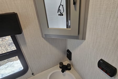 When you choose our North Trail Ultra-Lite travel trailer you are choosing comfort, convenience, and quality craftsmanship at its best. The block foam brick insulation, enclosed and heated underbelly, plus Weather Guard thermal protection mean you can camp all year around. Our camper features a Wide Trax suspension for a smooth ride, solar system, and power inverter make camping completely off grid that much easier if you choose. Some of the other exterior features you will appreciate are the outside shower, the power stabilizer jacks and power tongue jack, and the outside speakers to keep the party going. Head inside to find stainless steel appliances, oversized windows, and premium flooring.