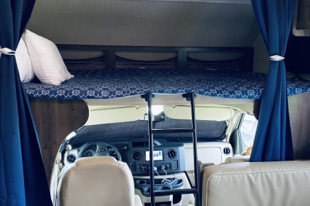 Fully stocked and adventure-ready, this RV comes equipped with bedding, linens, towels, cleaning supplies, a coffee nook with a French press, cookware, and dishes. The outdoor setup is just as impressive, featuring six chairs, a folding table, a charcoal grill with utensils, an outdoor carpet, and plenty of entertainment, including cornhole boards, a football, and a frisbee. Additionally, there is an automatic leveler, making it a quick and easy set-up!