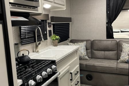 2022 Jayco Jay Flight RV – Ready for Your Next Adventure The 2022 Jayco Jay Flight is built for families and groups who want comfort and convenience on the road. With plenty of space, a full kitchen, and a comfortable sleeping setup, it’s an ideal option for longer trips or weekend getaways. Sleeping for Up to 10 Queen-sized bed – A comfortable place to rest after a day of exploring. Full-size bunk beds – Great for kids or additional guests. Jackknife sofa – Offers extra seating during the day and converts into a bed at night. Convertible dinette – Easily turns into another bed when needed. Comfort Features Full bathroom – Includes a shower, toilet, and sink, so you don’t have to worry about finding public restrooms. Gas & electric water heater – Hot water when you need it, whether you’re parked at a campground or off the grid. Air conditioning & furnace – Stay cool or warm no matter the weather outside. Kitchen & Dining 3-burner stove & oven – Cook your meals just like at home, even on the road. Refrigerator & microwave – Keep food fresh and heat up quick meals with ease. Good storage space – Plenty of room for all your kitchen gear and food. Entertainment & Tech TV & Bluetooth speakers – Watch your favorite shows or listen to music while you relax. Solar Package – Provides extra power for when you’re off the grid and need to charge your devices or run small appliances. Exterior Features Large awning with blue LED lights – Create a great outdoor space for relaxing after a day of adventures. Pass-through storage – Lots of room for all your gear, from camping equipment to outdoor gear. 40 lbs of propane – Enough fuel to keep everything running, from cooking to heating. Water & Waste Capacity 42-gallon fresh water tank – Plenty of water for your trip. 39-gallon grey & black water tanks – Generous capacity to keep you going without needing to dump often. The 2022 Jayco Jay Flight has everything you need to enjoy your time on the road. It’s spacious, practical, and ready for whatever adventure you have in mind.
