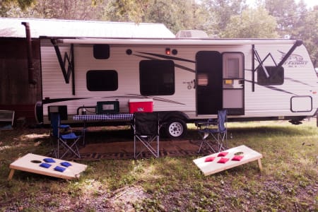 The Jay Flight SLX 264BHW travel trailer by Jayco is perfect for a weekend getaway. With rear double bunk beds, you can easily bring along a few guests and your Pets!