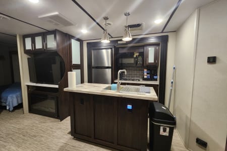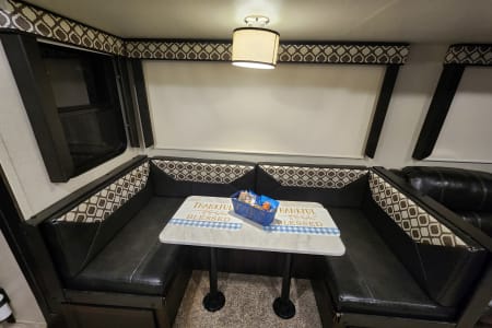 WHAT IS PROVIDED IN EVERY RENTAL: Keurig with hot cocoa, tea, coffee, sugar, creamer, all kitchen dinnerware and cookware, cups, plates, bowls, linens, blankets, pillows, towels, dish soaps, hand soaps, paper towels, garbage bags, tin foil, special RV toilet paper, toilet deodorizers, games/coloring books for children, Smart TVs, outdoor mat, cleaning products, etc. Leave all your extras at home!