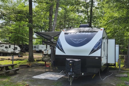 This pet-friendly Lacrosse camper has all the amenities to make your trip comfortable and memorable. Enjoy all the perks of home while you adventure in style!