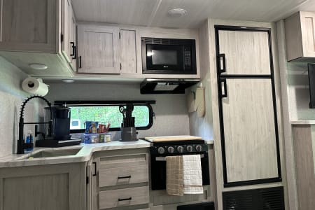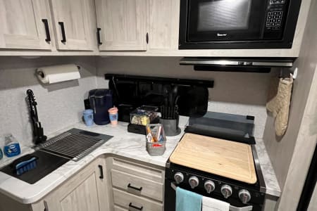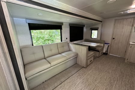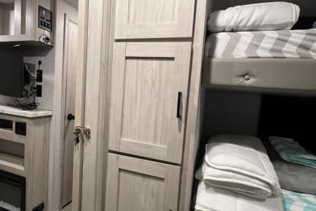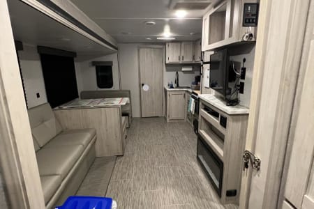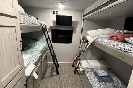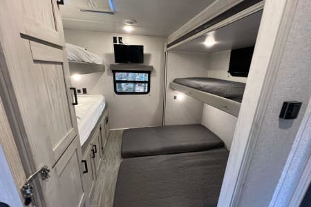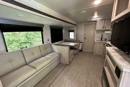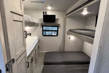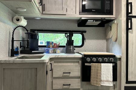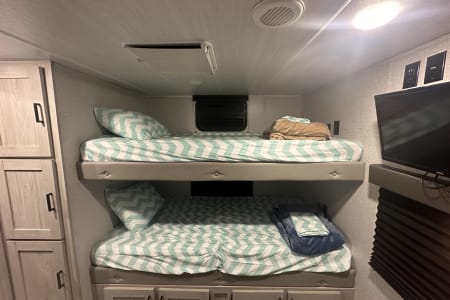 WHAT IS PROVIDED IN EVERY RENTAL: Keurig with hot cocoa, tea, coffee, sugar, creamer, all kitchen dinnerware and cookware, cups, plates, bowls, linens, blankets, pillows, towels, dish soaps, hand soaps, paper towels, garbage bags, tin foil, special RV toilet paper, toilet deodorizers, games/coloring books for children, Smart TVs, outdoor mat, cleaning products, etc. Leave all your extras at home!