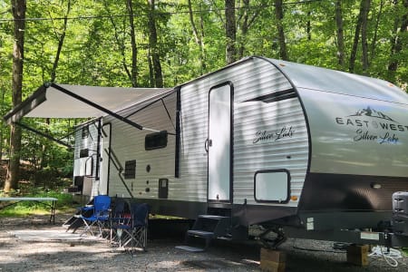 With room for up to 13 guests, this 38-ft 2022 East to West Silver Lake camper is perfect for large families or group getaways! Featuring 2 slide-outs, an outdoor kitchen, spacious bunkroom, and tons of storage, this rental combines comfort and convenience for an unforgettable camping experience.