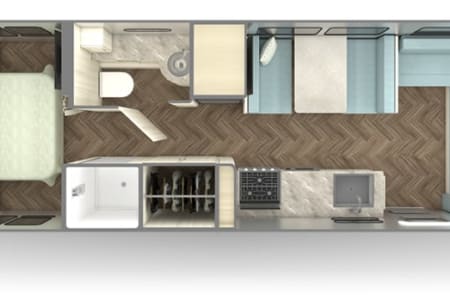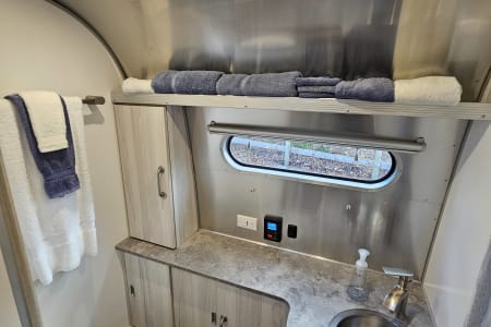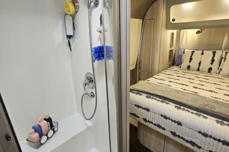 Convenience meets luxury with a large wardrobe and a refreshing shower conveniently side by side, while the restroom is just a step away in the hallway. The Airstream International 30RB isn’t just a trailer; it’s a sanctuary on wheels, designed to inspire your wanderlust and make every journey unforgettable.