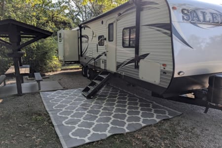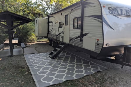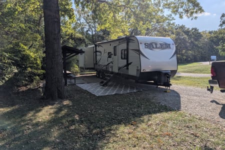 The Salem 31KQBTS travel trailer by Forest River offers triple slides and a rear bunk house.