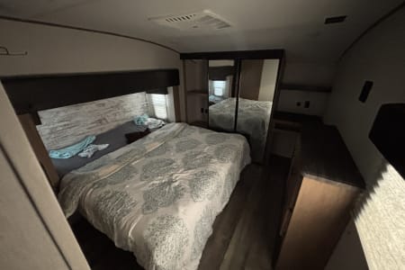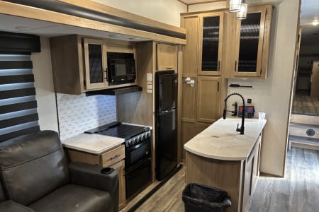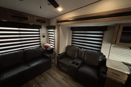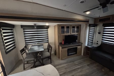 Enjoy your family adventure in style, space, and comfort in this Forest River Cherokee Arctic Wolf 3660 Suite! This trailer will comfortably sleep 9 people. This well appointed unit is your perfect companion on your next adventure during all seasons of camping. Sleeps 9 people: Private King suite with slide and closet storage Private bunk room with twin bunk and queen pull out sofa bed Loft area with King mattress Living room queen pull out sofa bed You will have to send confirmation that you have reserved a full connection RV spot. (Water, sewer, 50 amp electrical)