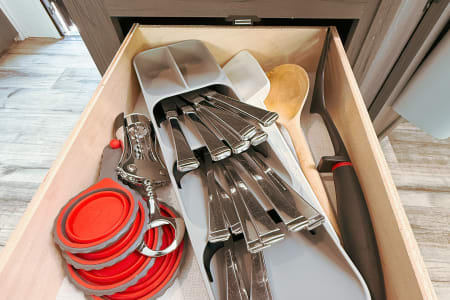 Fully Equipped Kitchen: Includes an air fryer, cookware, and all the essentials to whip up your favorite meals.