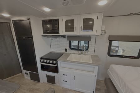 This is a very lightweight trailer that sleeps 5 comfortably. This trailer is ready to take your family on any adventures you have coming up!