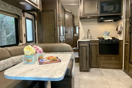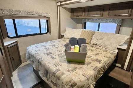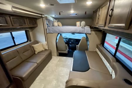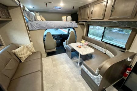 Our 26 foot class C motor home is easy to drive and is short enough that you can travel anywhere your car can. The RV is equipped with an Onan 4k generator to run the 13500 BTU A/C, microwave, 1 TVs DVD player and all the electrical outlets. The refrigerator, hot water heater, furnace and oven/stove are run off LP propane. There are four sleeping areas - queen size in the back, full loft above the cab, the dinette, and couch conversion that sleep 6 adults comfortably or 7 if two are small kids. We provide fresh sheets and blankets, pillows, towels, cups, plates, knives, pots and pans, outdoor games, campfire chairs, tools and other items from my garage if you need them. Just bring your own food and clothes and set out for an adventure of a lifetime.