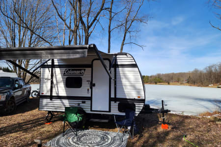 Rent our Keystone Coleman 13B, a compact, all-electric RV perfect for your next adventure. This cozy, compact, modern trailer offers the comforts of home on the road! Enjoy an efficient and environmentally friendly ride.