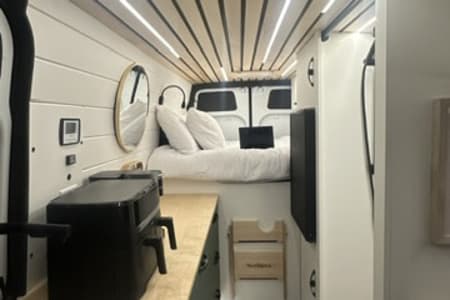 Découvrez “Jean-Claude VAN Damme”, un Sprinter Mercedes 2500 de 2021, isolé 4 saisons, 100% autonome et full équipé pour toutes vos aventures !