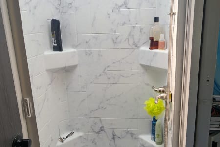 Relax and refresh in the spacious bathroom complete with full shower for a home like experience.