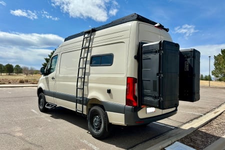 This van has a 480 amp hour 12V system with 600 watts of solar on the roof. We also have a 100 amp DC charger that will change the entire system from 0 to 100% in 4.5 hours of driving. There’s also a shore power capable to accepting both 15 and 30 amp A/C power.