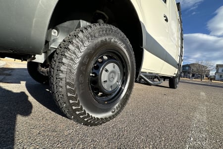 This van has the factory lifted suspension that comes with the all wheel drive package. We have equipped the van with taller all terrain tires that are 3 peak mountain snowflake rated so you don't have to worry if you end up driving in snowy weather.