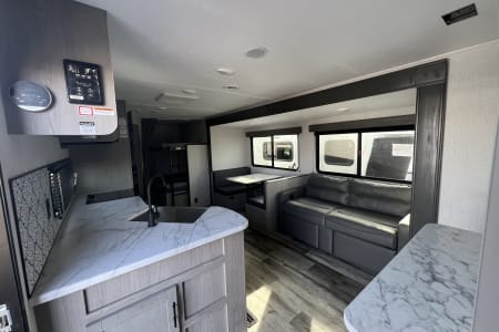 Thank you for booking with Happy Campers! We will provide you with all the amenities you are looking for, to have a complete and amazing trip! This will include a complimentary inverter generator(if available - please inquire before booking if you need one), and a towing hitch! Just bring your vehicle to tow! We will also provide all basic linens, bathroom items, and kitchenware for a worry-free trip. 6 will fit comfortably, but can fit up to 8 for those larger families!