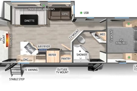 Embark on your next adventure with this brand-new Cherokee Wolf Den 294GEBG camper! Perfect for families, couples, or solo travelers, this spacious and modern camper offers all the comforts of home while you explore the great outdoors. With a well-designed layout, it features a cozy queen bed, bunk beds for extra sleeping space, a fully equipped kitchen with ample storage, and a bathroom with a shower. The living area is ideal for relaxing after a day of hiking, fishing, or sightseeing, complete with comfortable seating and plenty of natural light. Lightweight and easy to tow, this camper is ready to hit the road for your next campground escape. Whether you’re chasing sunsets or stargazing under the night sky, the Cherokee Wolf Den 294GEBG delivers the perfect blend of convenience and adventure. Book now and start making memories!