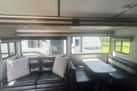 Open Living Area: Slide-out dinette and jackknife sofa create a comfortable space for dining and relaxing.