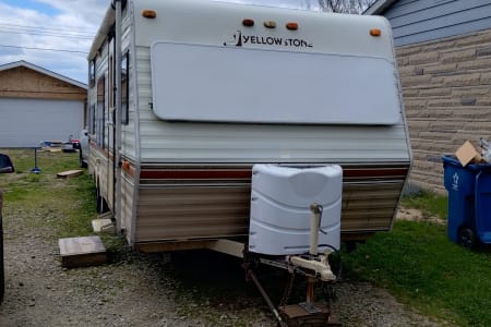 Very taken care of 1985 Yellowstone camper just the 3rd owner. No leaks no problems. Everything works as it should and has updated water heater and updated AC and heater installed. Awning slides out and back in remarkable. All the windows won't open flawlessly. Inside of the camper is emaculant. Has leveling bubbles on front hitch so you know your leveled. Has the hitch that includes the sway bar connection. You can rent to take with you and bring back or rent to stay in the driveway just minutes from the Indianapolis motor speedway and minutes from the airport. Would be willing to pick up from airport and drop off or picked up from raceway and dropped off.