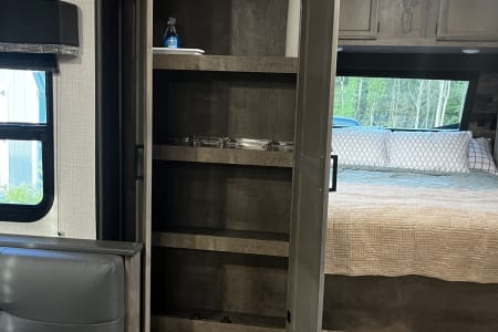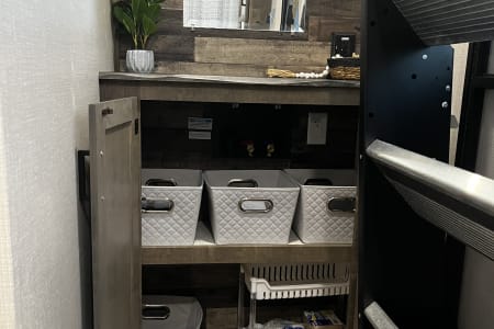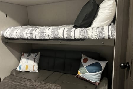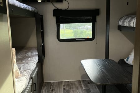 This beautiful SportTrek is waiting to take you and your family or friends on the next adventure. It can sleep up to 11 people with plenty of room for everyone to enjoy a weekend getaway or a vacation stay. Master bed is a private queen room, and the bunkroom has 3 twin size bed and also has a jackknife sofa that can sleep 2. In the main room it has a big dinette table to seat about 6 people and in the back room you have the option to put a small table up when needed. The bathroom is large with plenty of room to move around in with excess to the outside if needed. Enjoy cooking meal outside with the t.v on or music playing while enjoy family and friends. I hope you enjoy your trip!