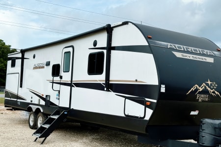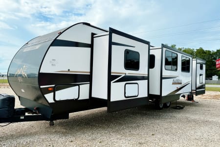 Enjoy a true home-away-from-home experience in this 2023 Forest River Aurora 340BHTS Sky Series — a luxurious, family-friendly travel trailer perfect for your next adventure. With three slide-outs, a separate bunkhouse, and sleeping for up to 10, this unit is ideal for large families, multi-family vacations, or extended stays.