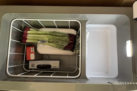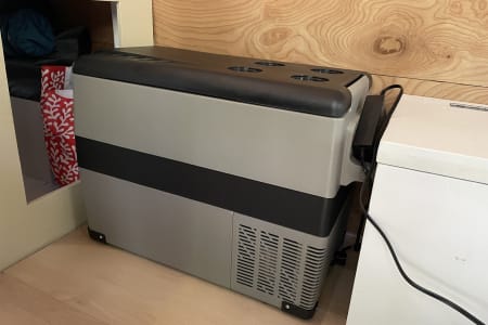 - Fridge/freezer (powered cooler, works at campgrounds with shore power)