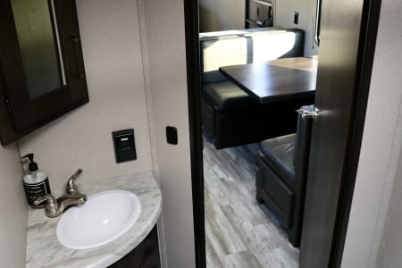 Enjoy the power awning, Bluetooth speakers inside and out, and plenty of USB charging ports throughout the cabin. Camp chairs, an outdoor rug, and all setup gear are included to make your trip easy and enjoyable.