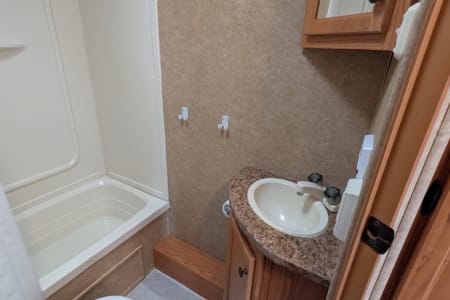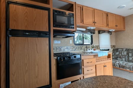 You'll enjoy a *private front queen bedroom*, a fully equipped kitchen, and a comfy dinette and sofa that convert into extra sleeping space. With a full bathroom onboard, you’ll have all the comforts of home—without giving up the wild.