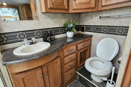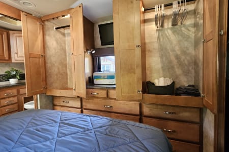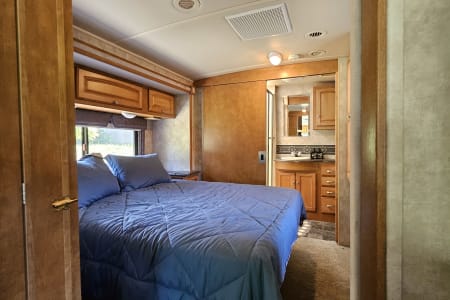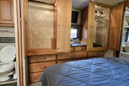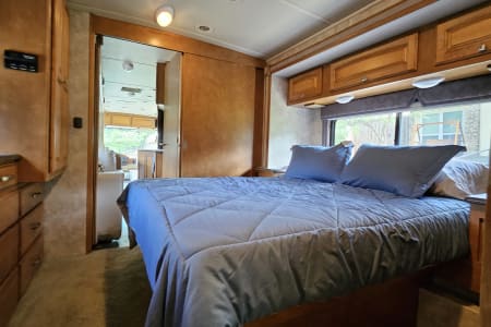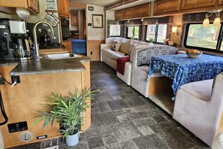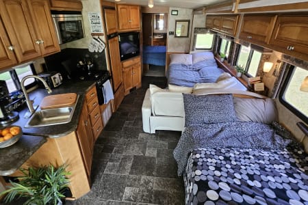 This Class A motorhome comfortably sleeps 6, featuring free UNLIMITED INTERNET . Pack your items and hit the road!