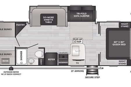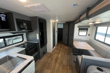 Pretty much brand new. Very comfortable with upgraded queen mattress and perfect to have a fun vacation or getaway
